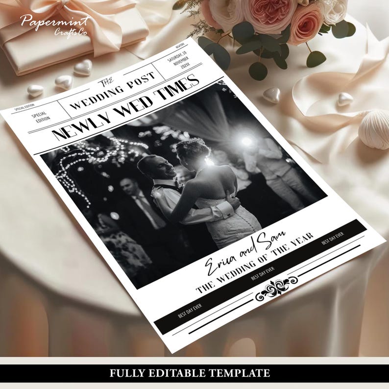 Wedding Newspaper Template Canva: DIY Printable Program (digital