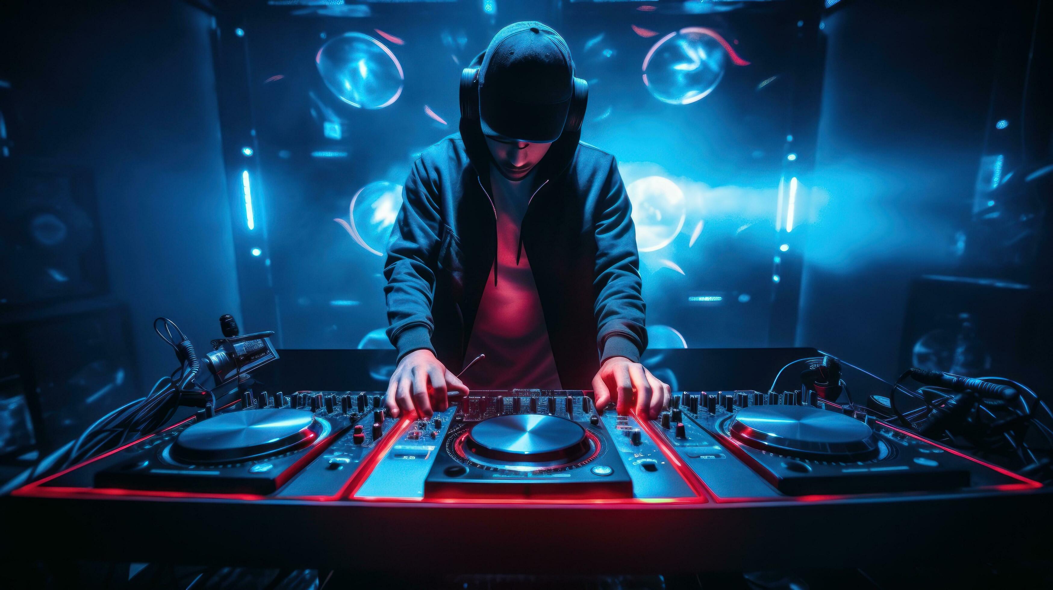 Vivid night club background with DJ 28841534 Stock Photo at Vecteezy