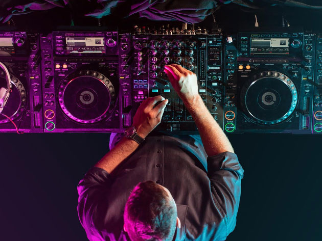 Premium Photo Dj player audio mixing electronic music in a nightclub