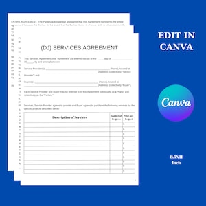 DJ Service Contract Editable DJ Agreement Wedding Dj Contract Disc