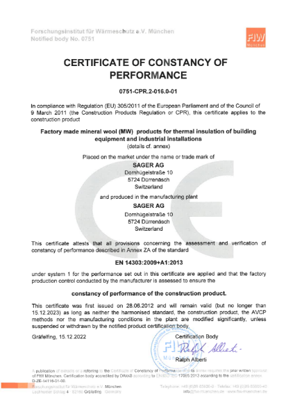 Certificate of constancy of performance SAGLAN INS Acoustics Limited
