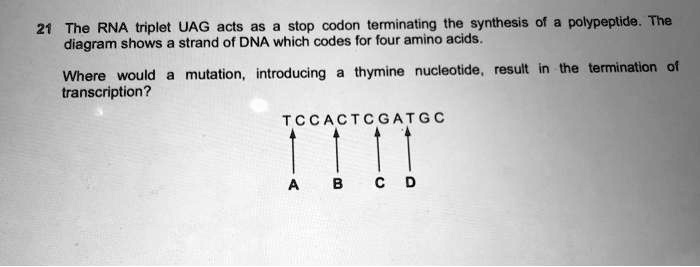 21 The RNA triplet UAG acts as a stop codon terminating the synthesis