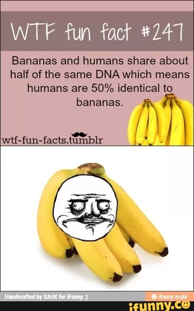 Bananas and humans share about half of the same DNA which means humans