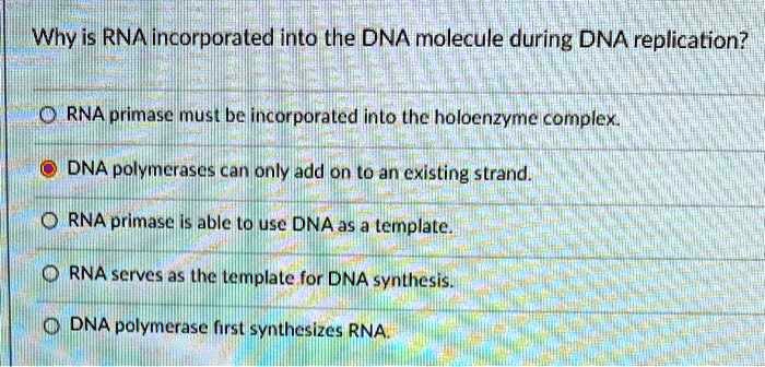 SOLVED: Why is RNA incorporated into the DNA molecule during DNA