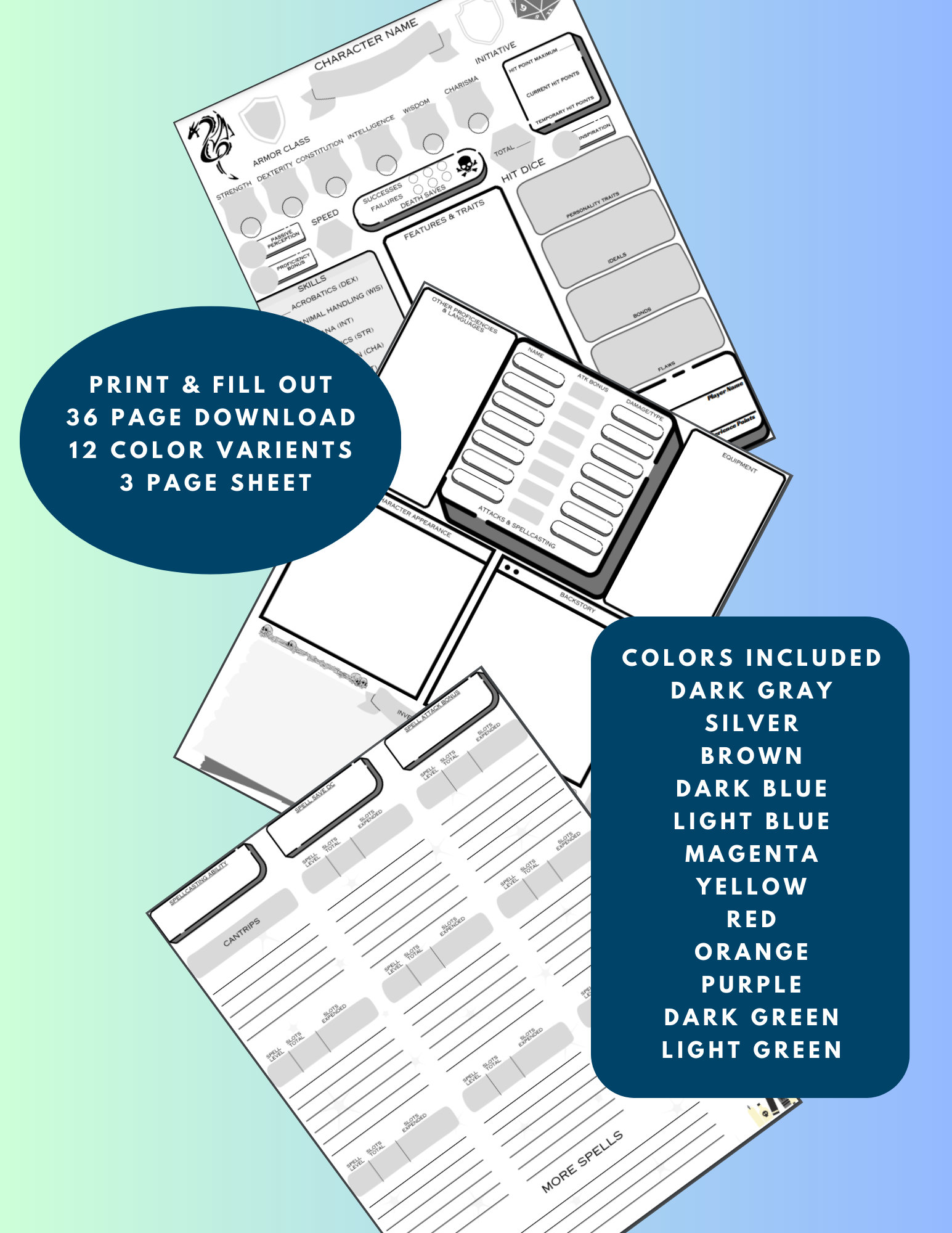 Dnd Character Sheet Printable Character Sheets Etsy