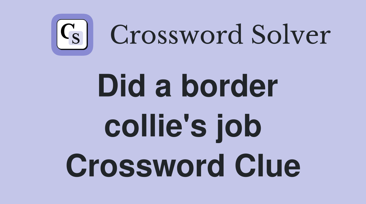 Did a border collie #39 s job Crossword Clue Answers Crossword Solver