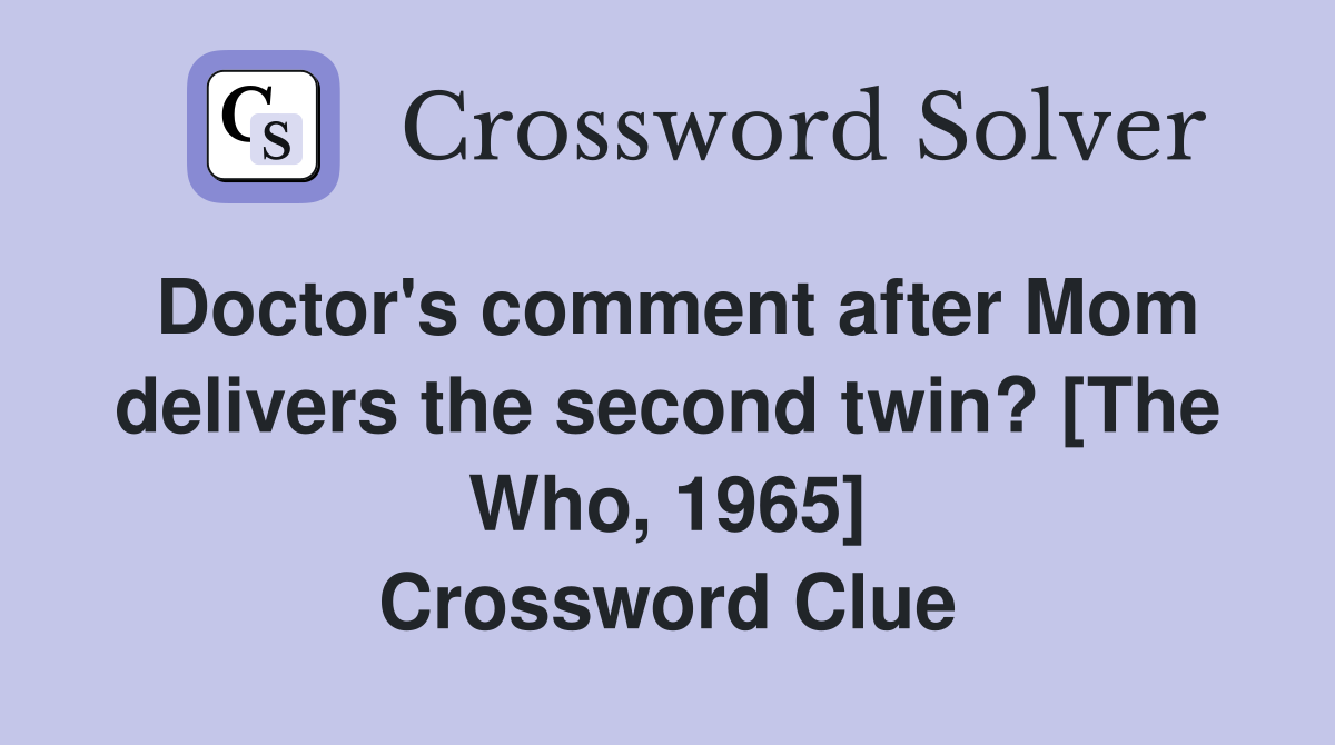 Doctor #39 s comment after Mom delivers the second twin? The Who 1965