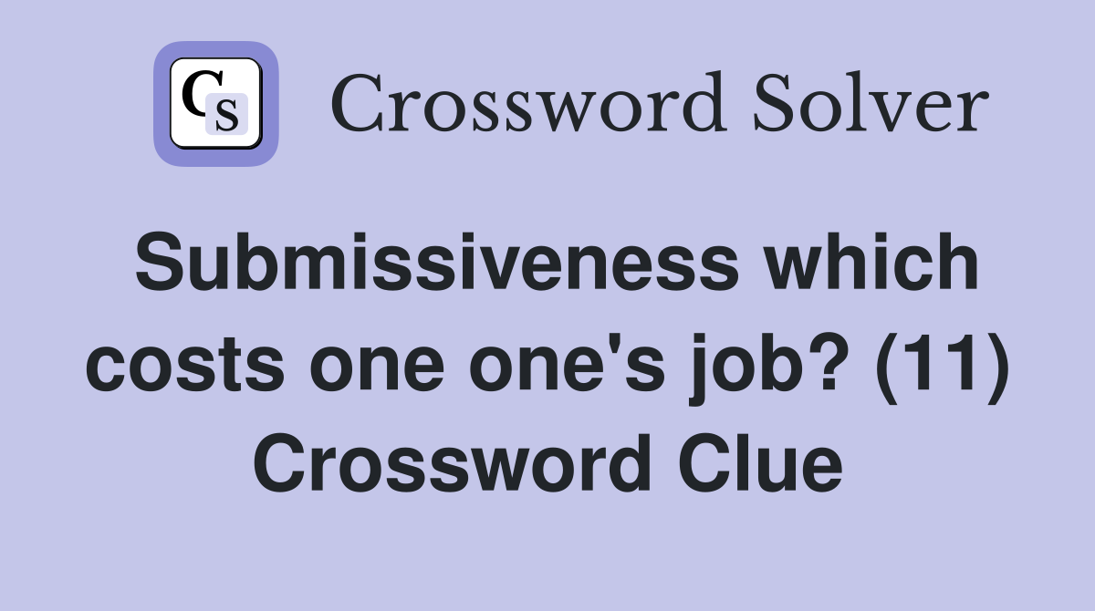Submissiveness which costs one one #39 s job? (11) Crossword Clue Answers
