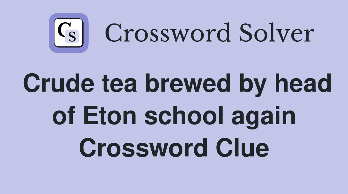 Crude tea brewed by head of Eton school again Crossword Clue Answers