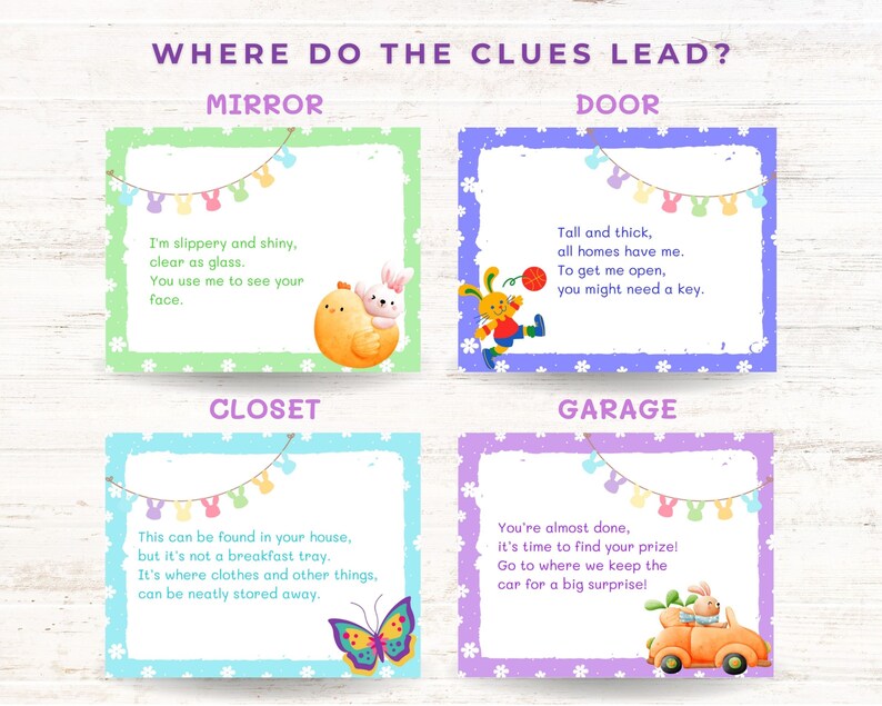 Easter Egg Hunt Clue Cards Indoor Outdoor Printable Easter Egg Hunt