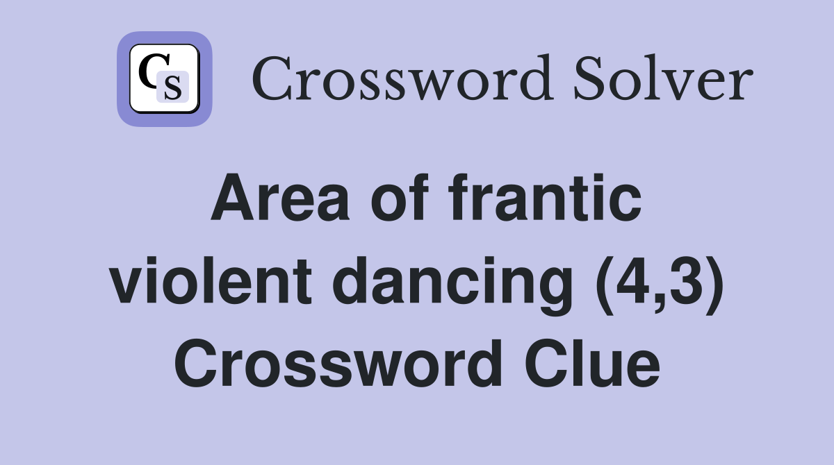 Area of frantic violent dancing (4 3) Crossword Clue Answers