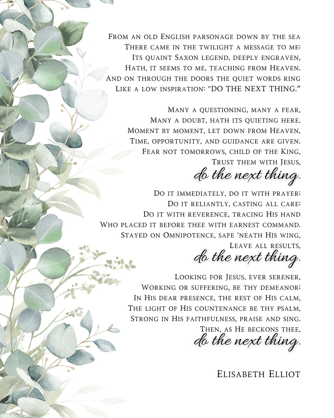 Do the Next Thing Poem Elisabeth Elliot Print Christian Poetry