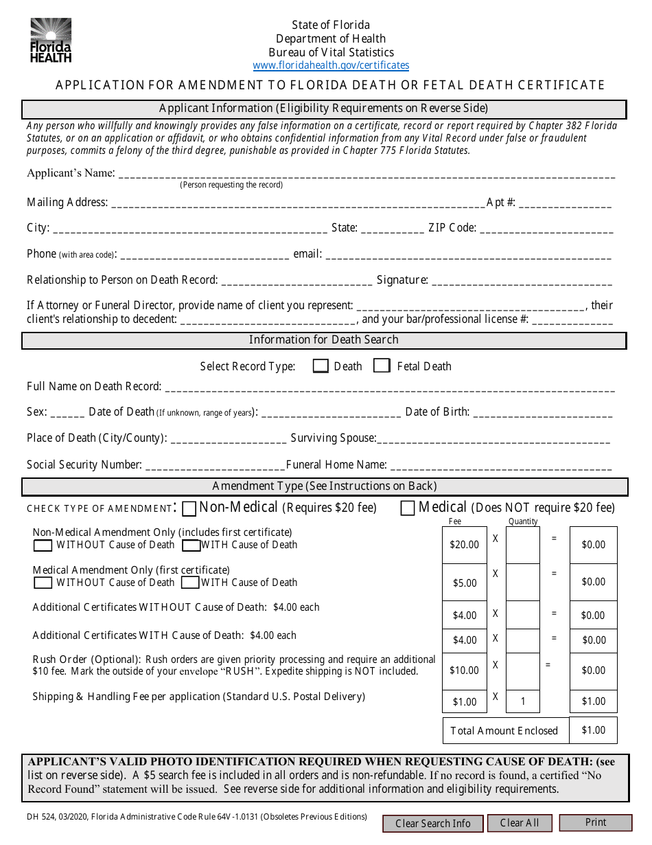 Form DH524 Fill Out Sign Online and Download Fillable PDF Florida