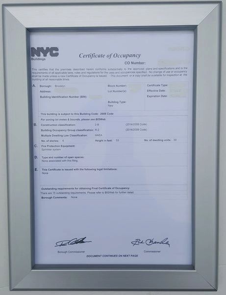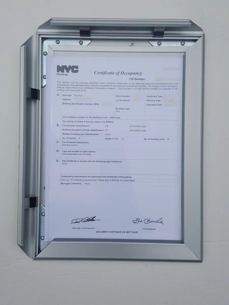 certificate of occupancy frame ( Heavy Duty) DOB SIGNS NYC YOUR