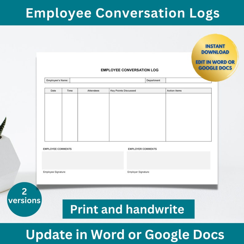 Employee Conversation Logs Word Template HR Conversation Etsy