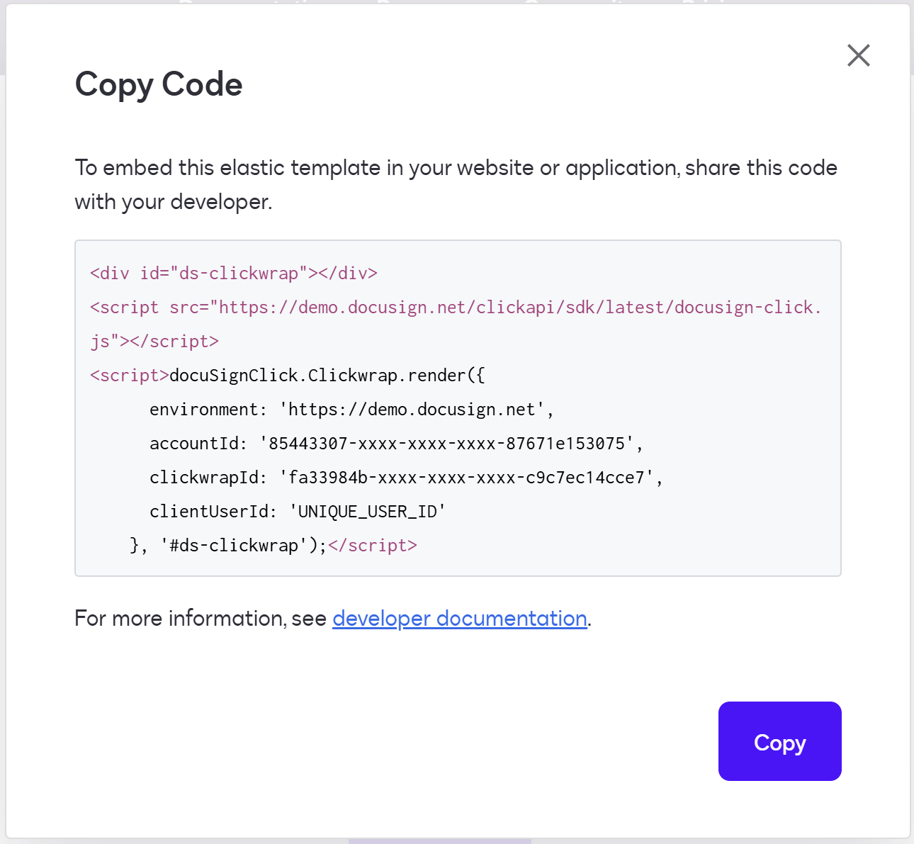 How to embed an elastic signing agreement Click API Docusign