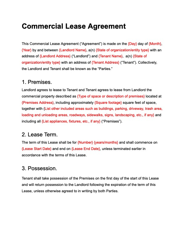 Commercial Lease Agreement Template: Free Contracts Docusign