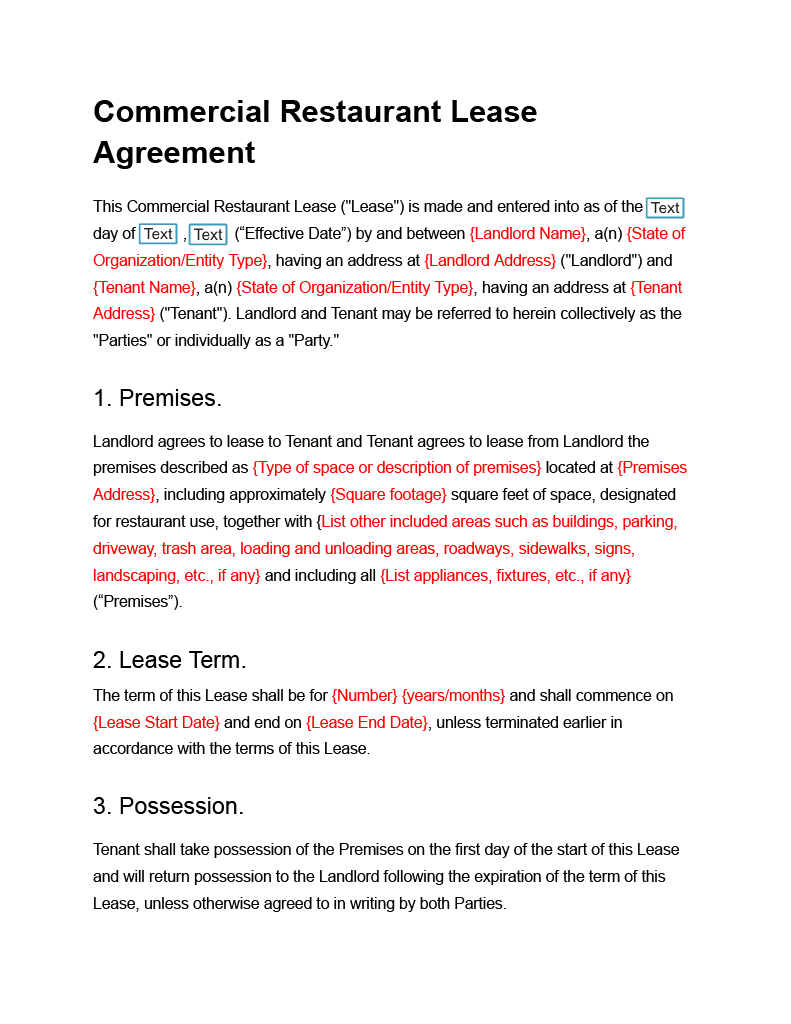 Commercial Restaurant Lease Contract Template Docusign