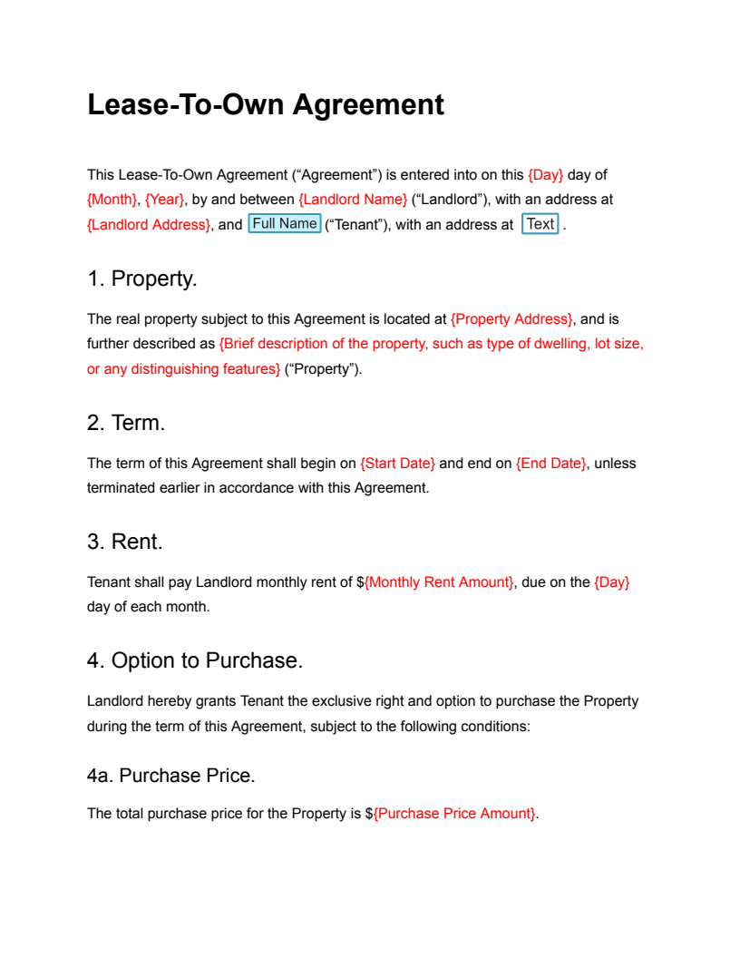 Lease to Own Template: Free Rent to Own Contract Docusign