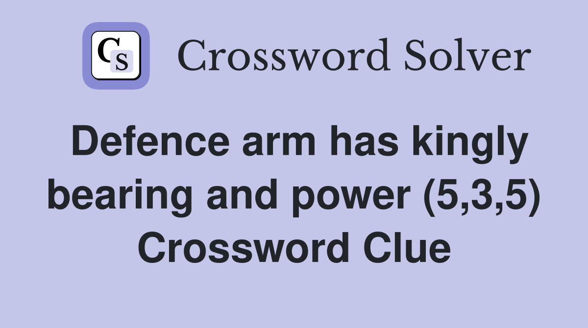 Defence arm has kingly bearing and power (5 3 5) Crossword Clue