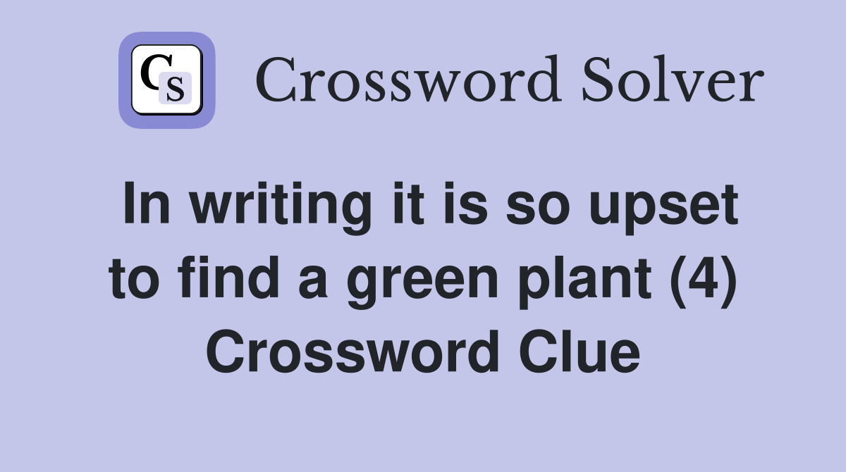 In writing it is so upset to find a green plant (4) Crossword Clue