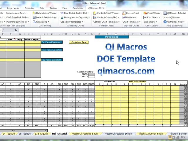 How to Video on Design of Experiments DOE Template Excel