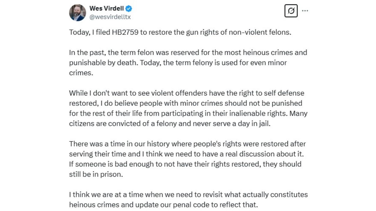 Bill to restore gun rights to those convicted of nonviolent felonies