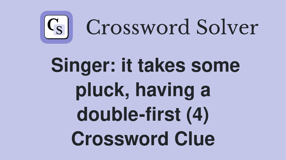 Singer: it takes some pluck having a double first (4) Crossword Clue