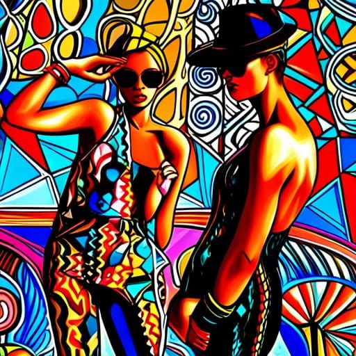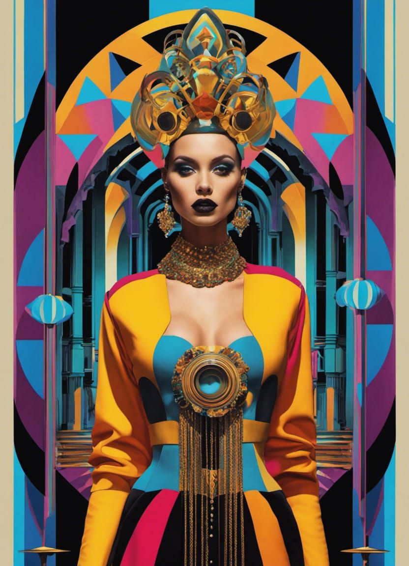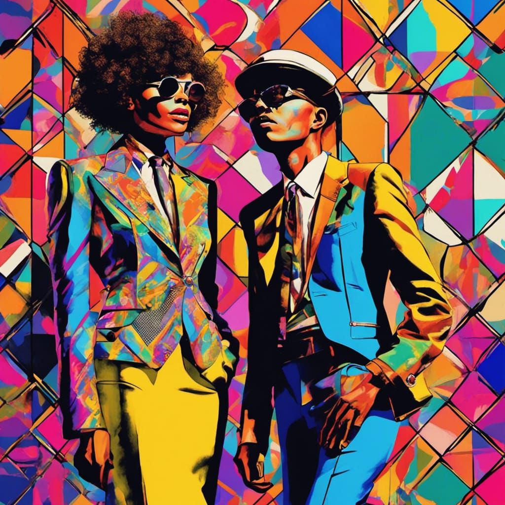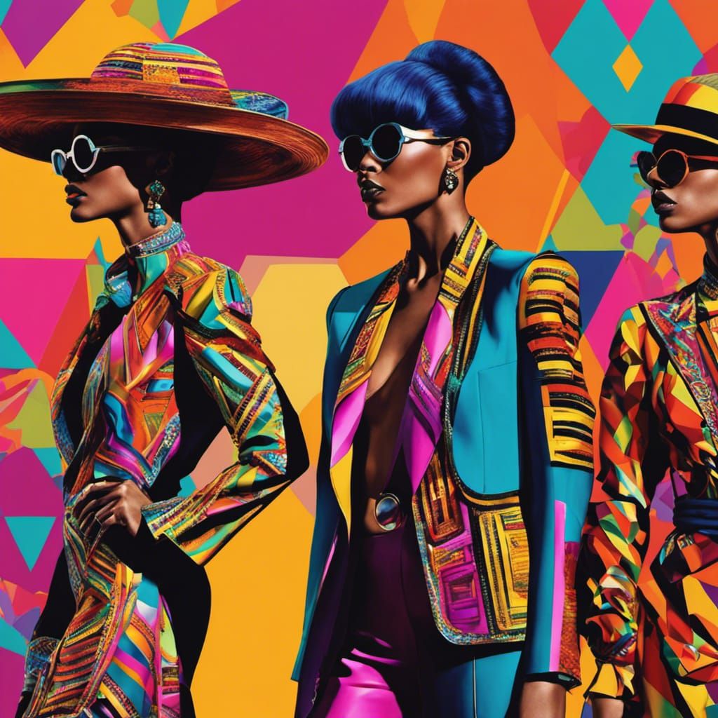 Mondrian fashion models sketch intricate details jazzy riff bebop
