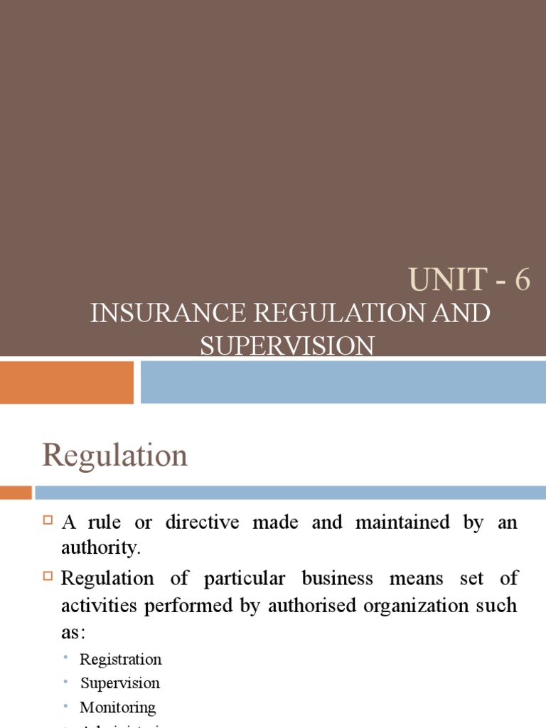603unit 6 Insurance Regulation and Supervision PDF Insurance