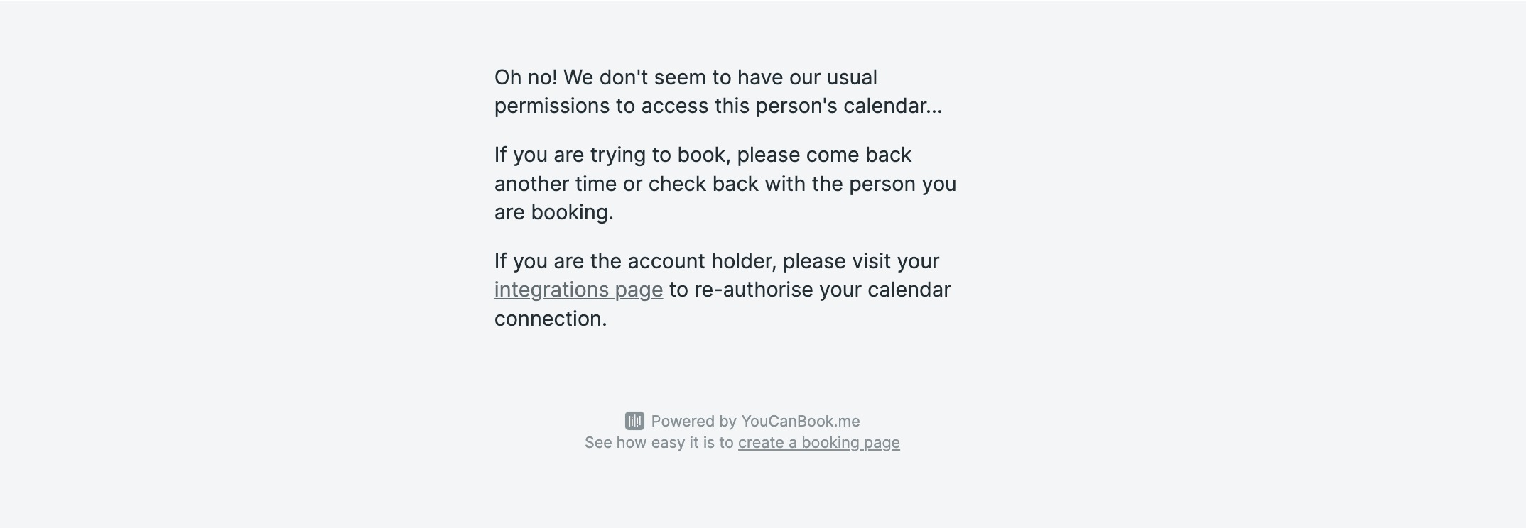 Why does my calendar disconnect from YouCanBookMe? Default Site