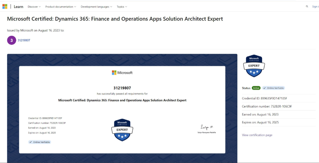 Confirmation of Expire date of Certification of Solution Architect