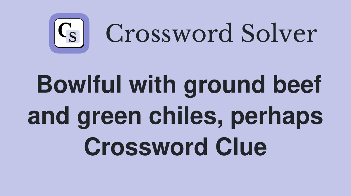 Bowlful with ground beef and green chiles perhaps Crossword Clue