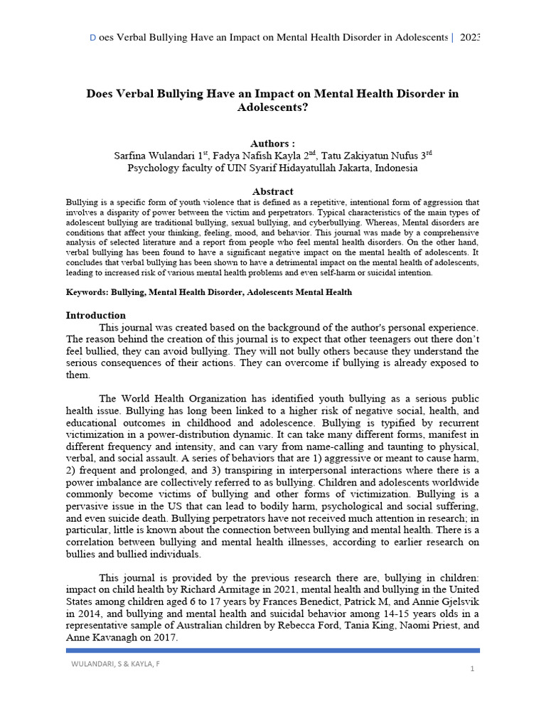 Does Verbal Bullying Have An Impact On Mental Health Disorder in