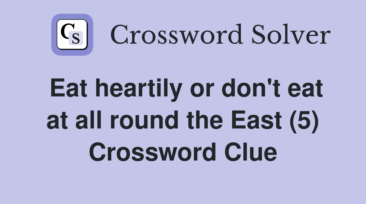 Eat heartily or don t eat at all round the East (5) Crossword Clue