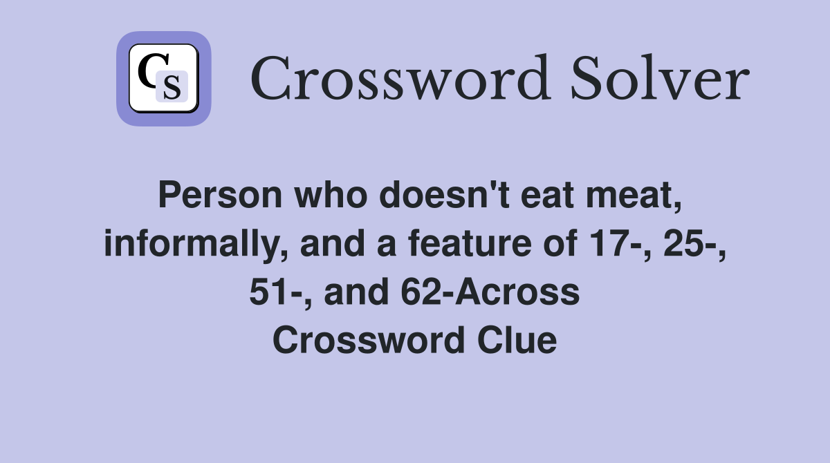 Person who doesn t eat meat informally and a feature of 17 25 51