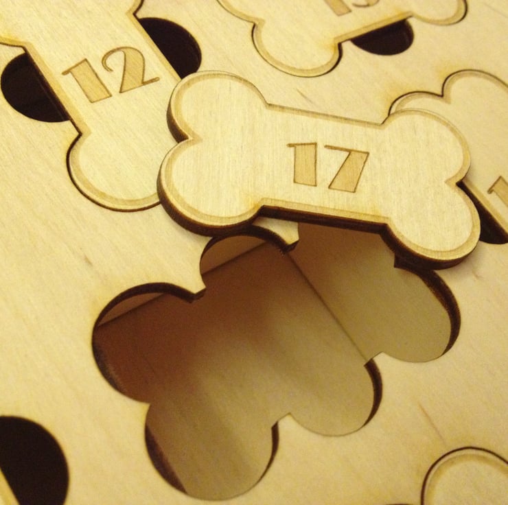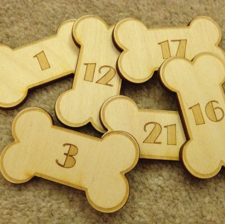 Wooden personalised dog bone advent calendar Laser LLama Designs Ltd