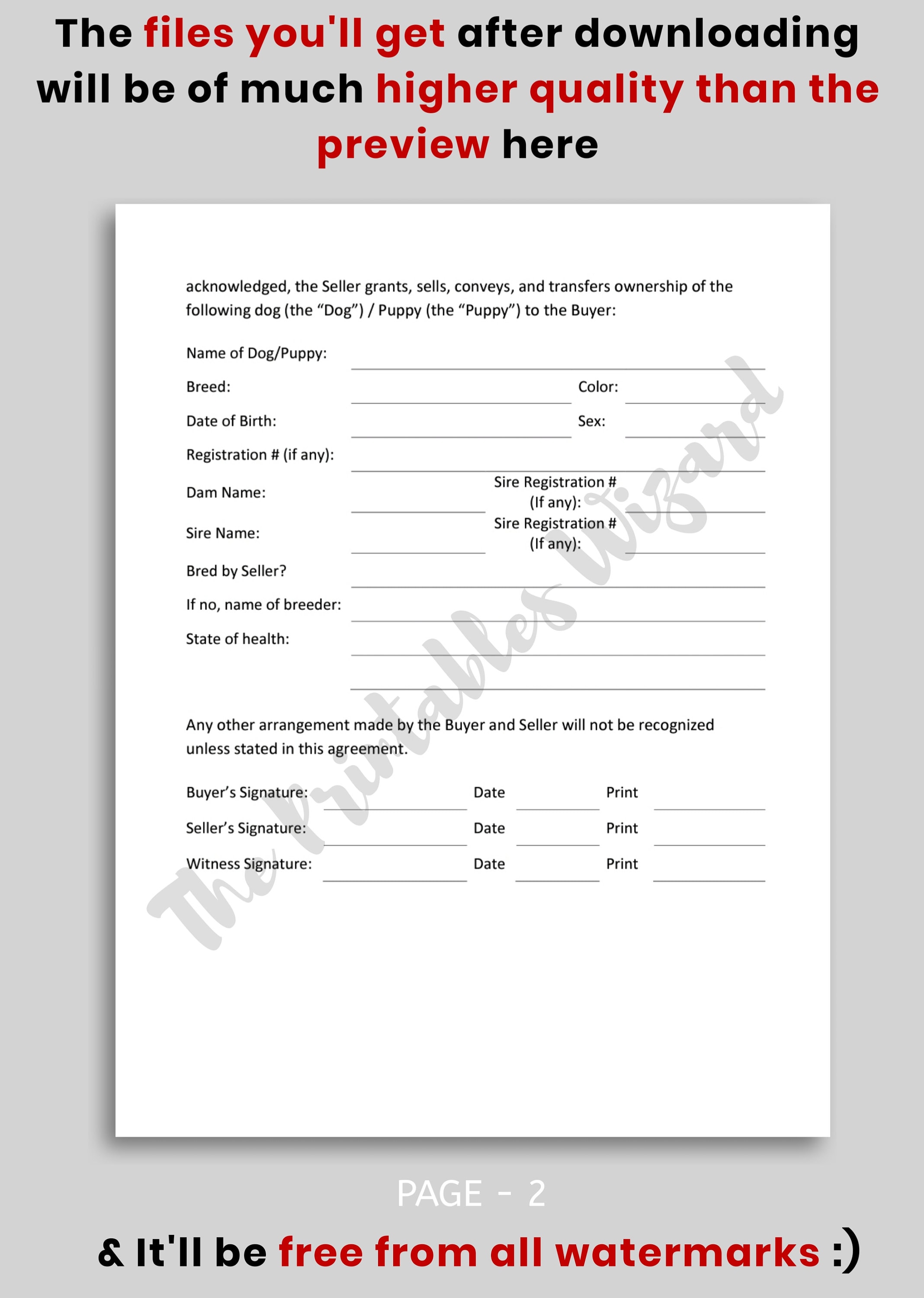 Full Registration Puppy Sale Contract Editable in Word Document Pr