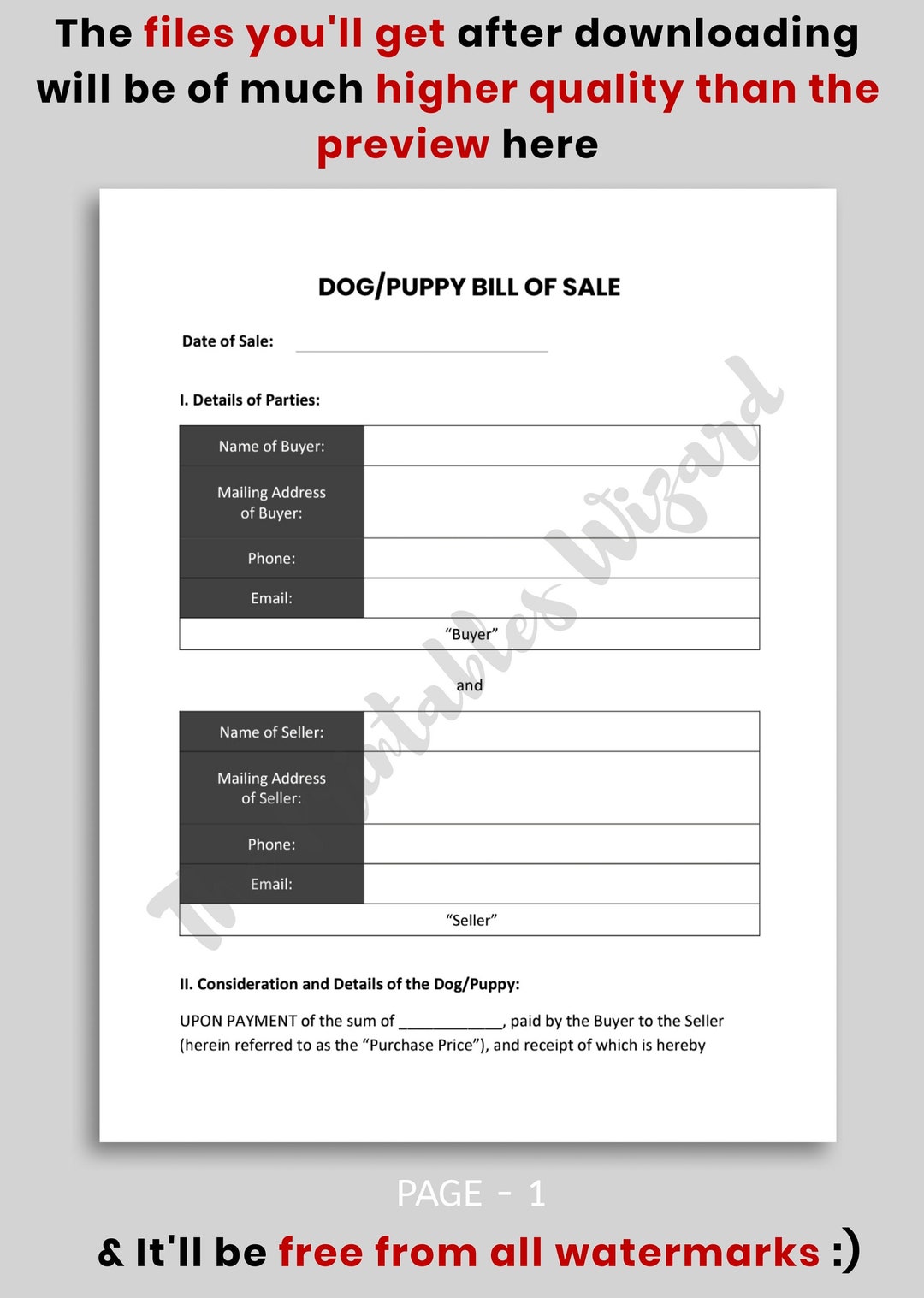Fillable Puppy Sales Contract Puppy Bill of Sale Editable Puppy