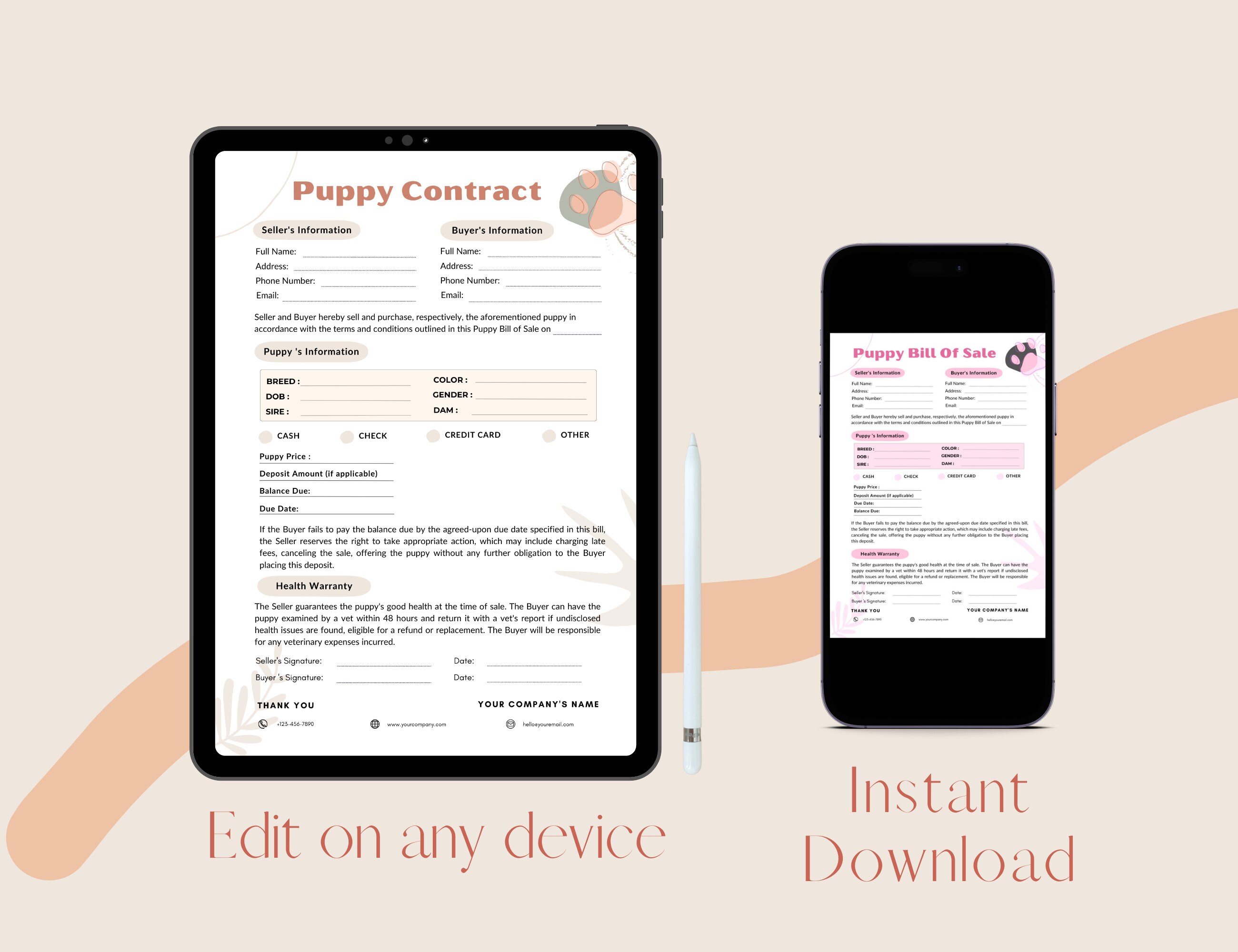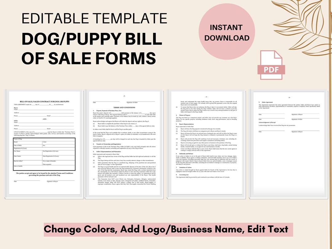 Printable Puppy Sales Contract Template (editable PDF Canva) Etsy