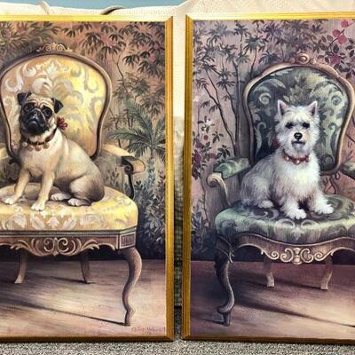 Wall Art prints 2 dogs Westie and Pug sitting on Victorian chairs