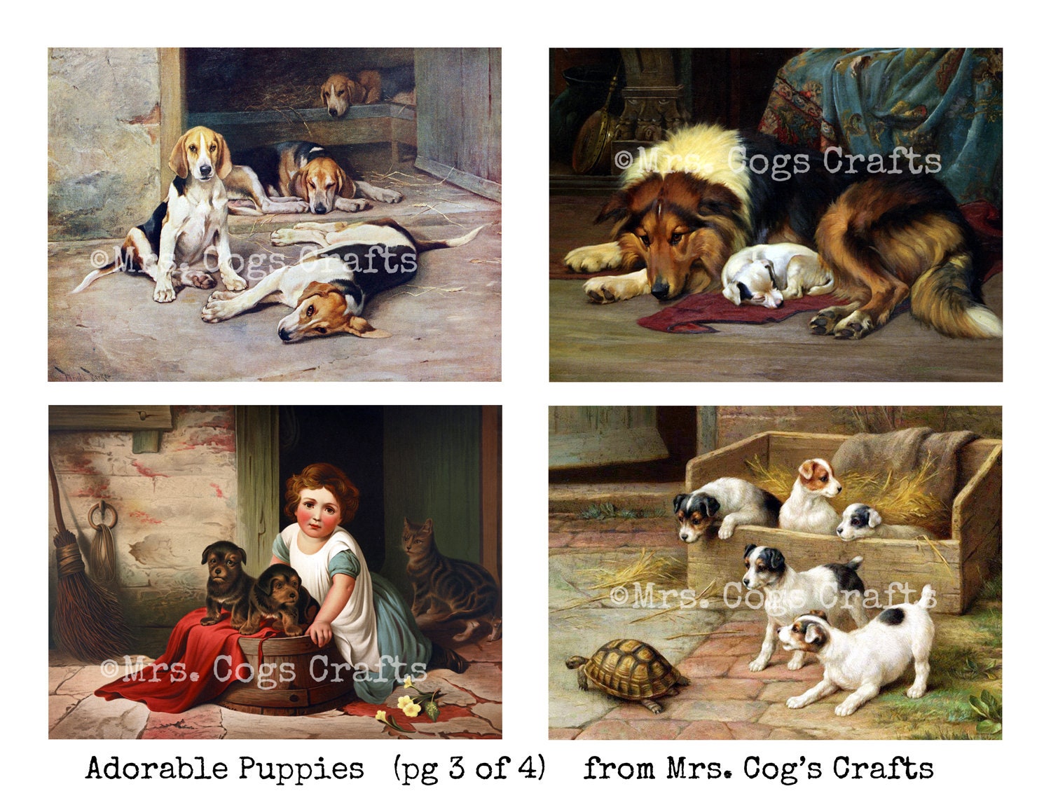 Adorable Puppies Dog Images Printable Images Vintage Art Etsy