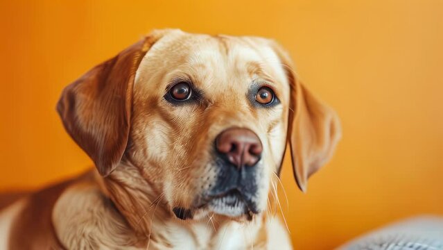 Cute White Labrador Retriever Dog is Lying on the Floor at Home Stock