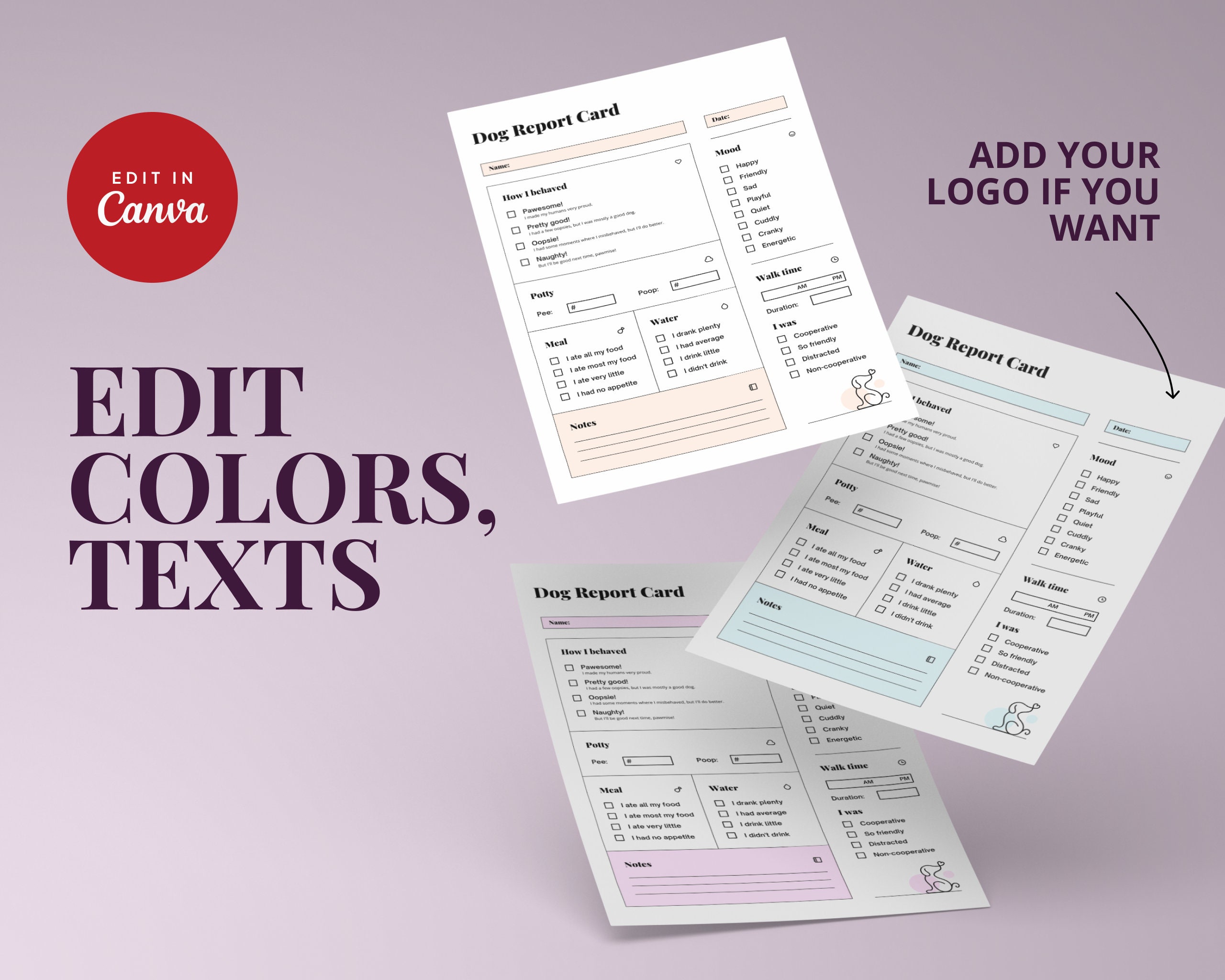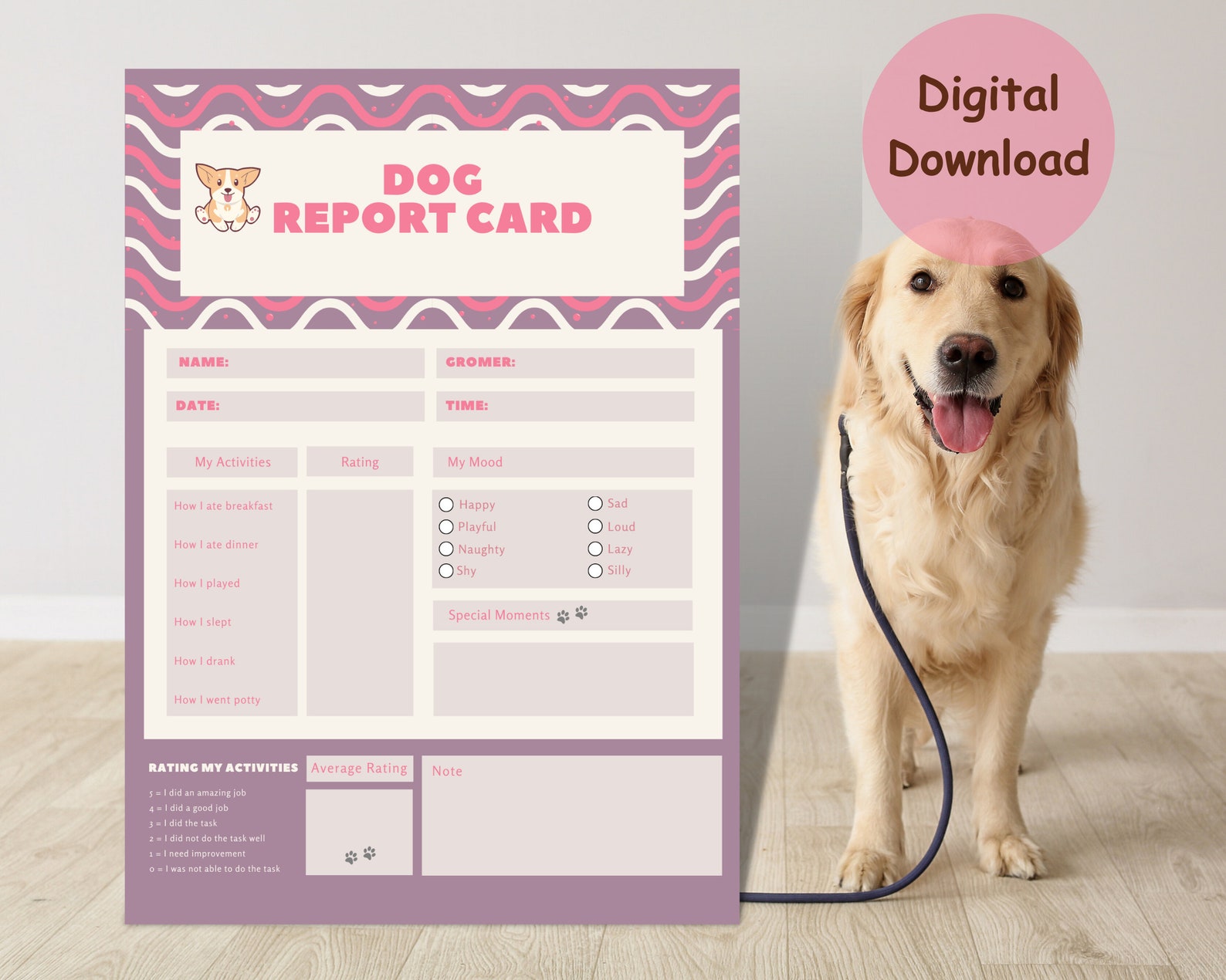 Printable Dog Report Card and Template Instant Download Pet Boarding