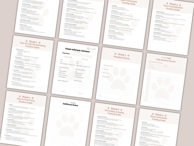 Dog Trainer 6 Week Training Plan Canva Templates Pack (checkin Form
