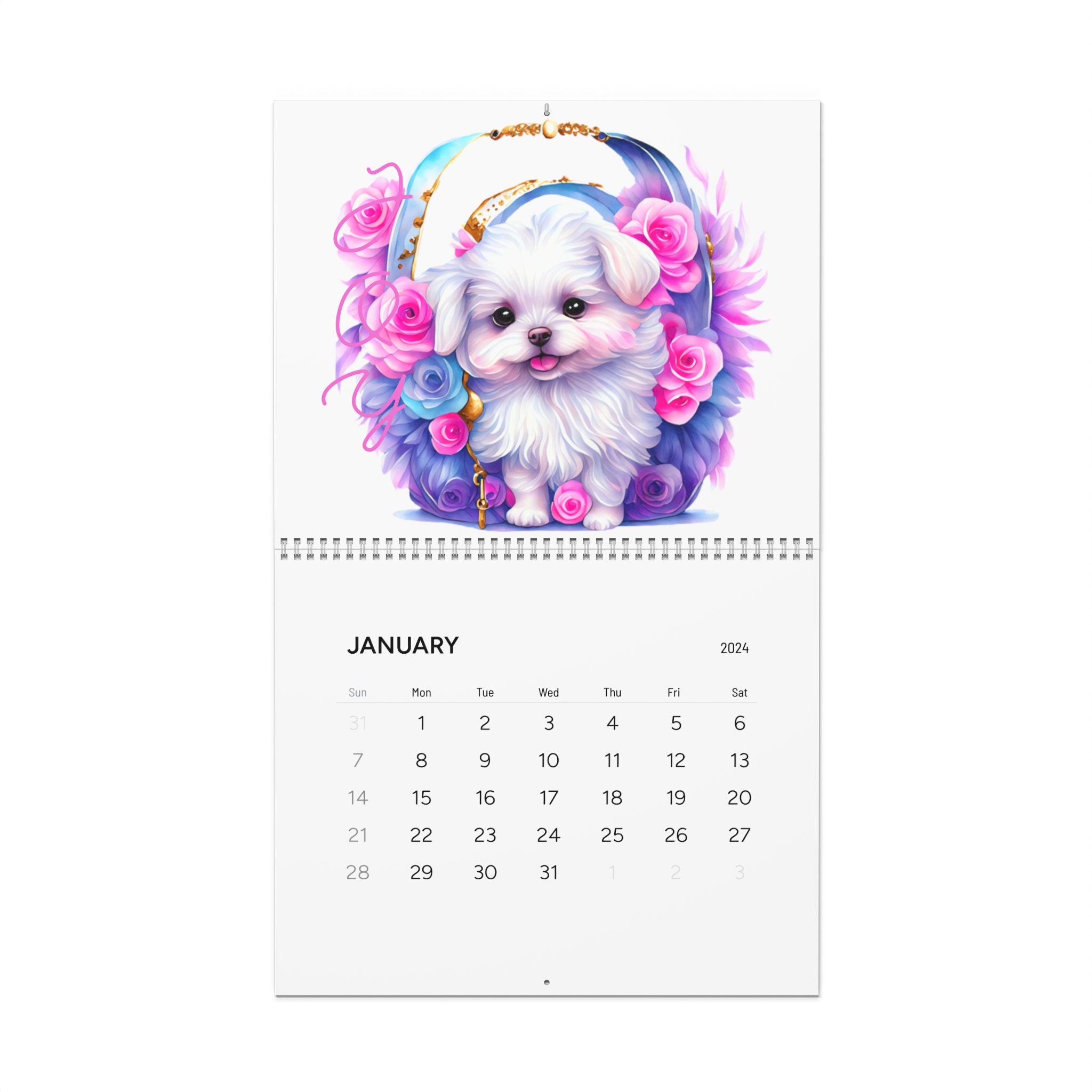 Dog wall calendar 2024 pink wall calendar 2024 nature animals wall