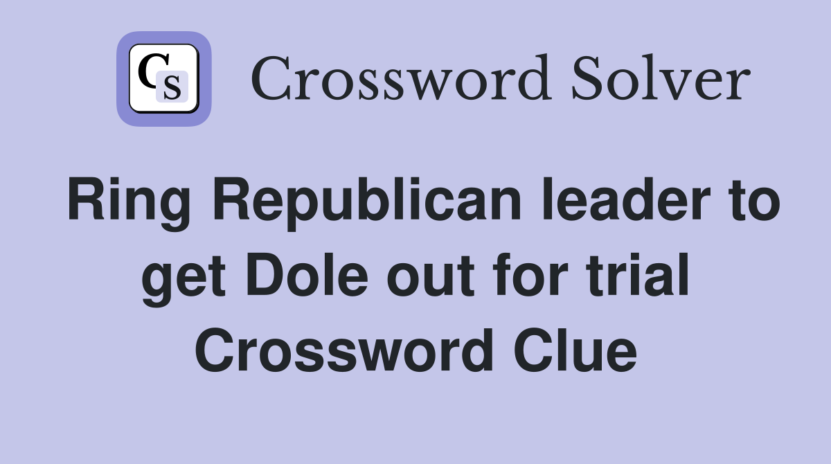 Ring Republican leader to get Dole out for trial Crossword Clue