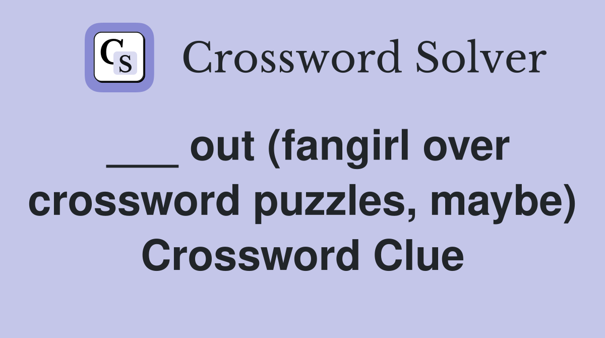 out (fangirl over crossword puzzles maybe) Crossword Clue Answers