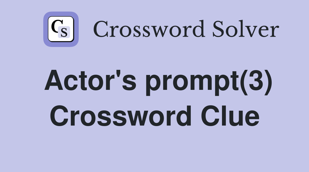 Actor #39 s prompt(3) Crossword Clue Answers Crossword Solver