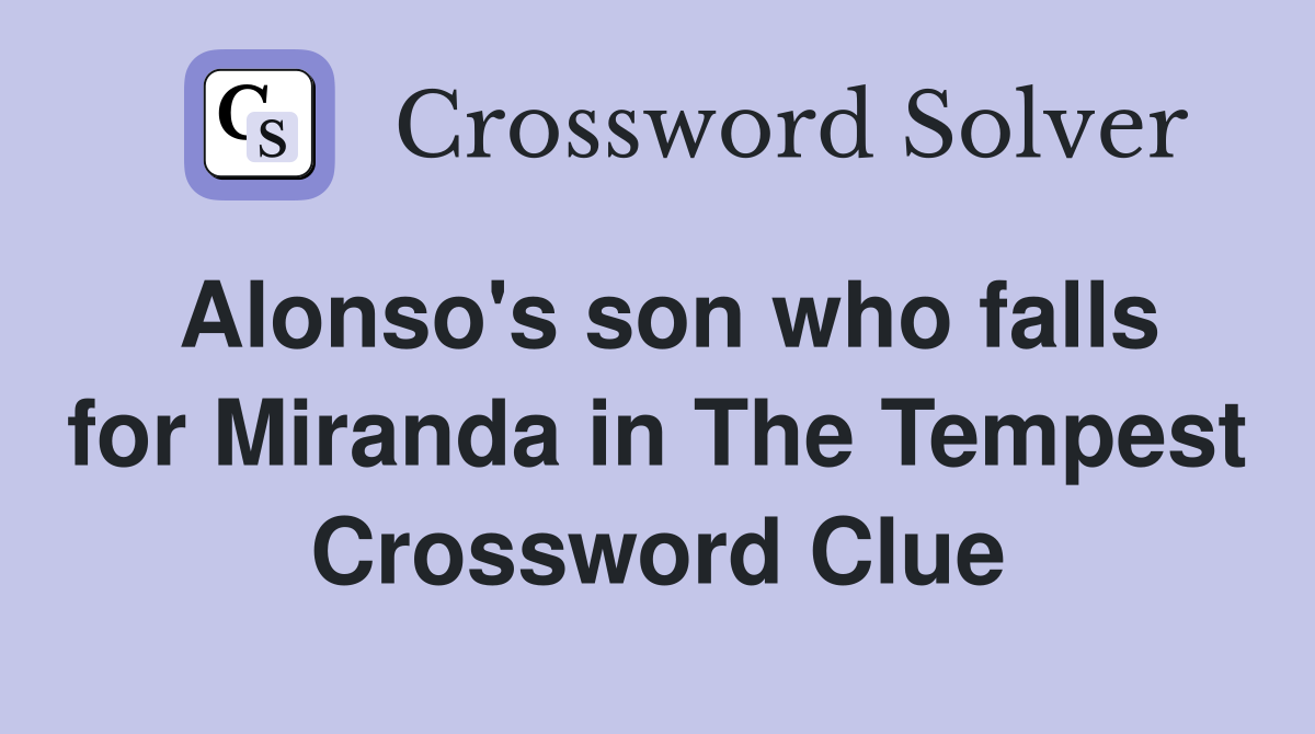 Alonso #39 s son who falls for Miranda in The Tempest Crossword Clue